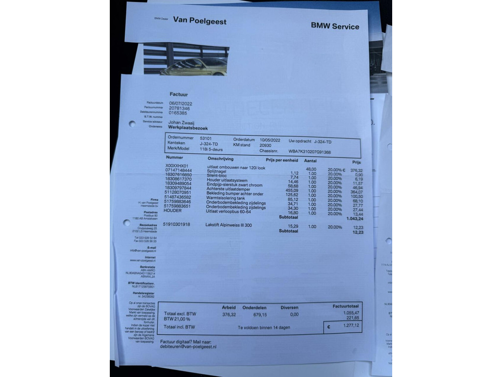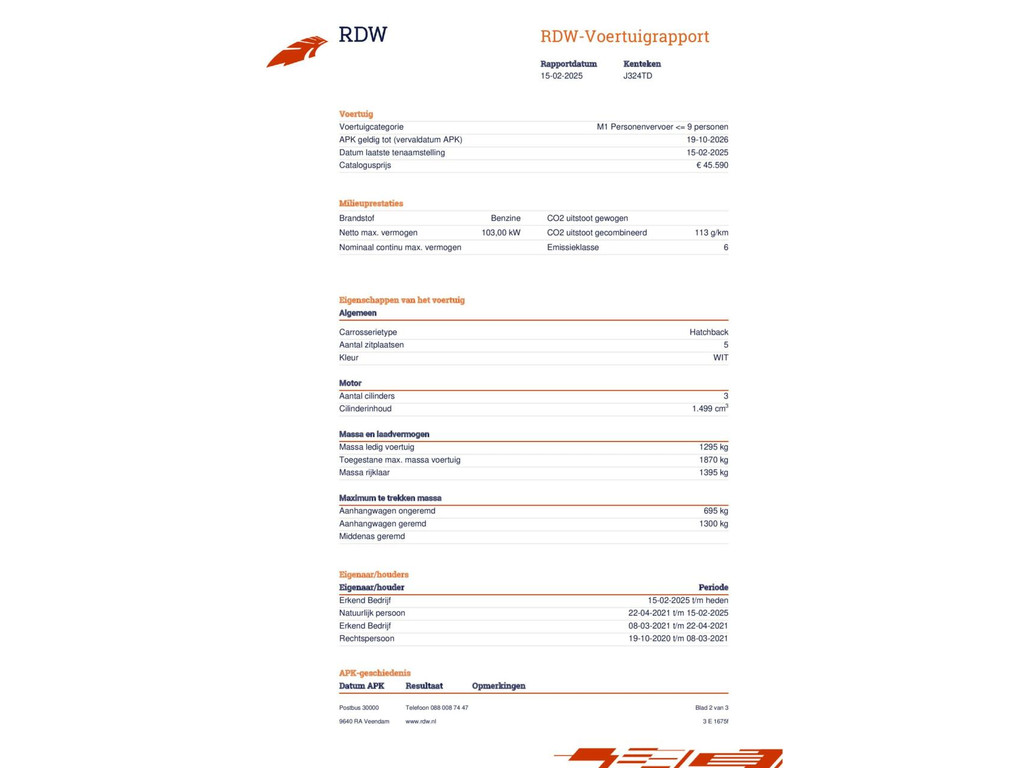 | Kilometerstand | Bouwjaar | Vermogen | Brandstof | Transmissie | BTW |