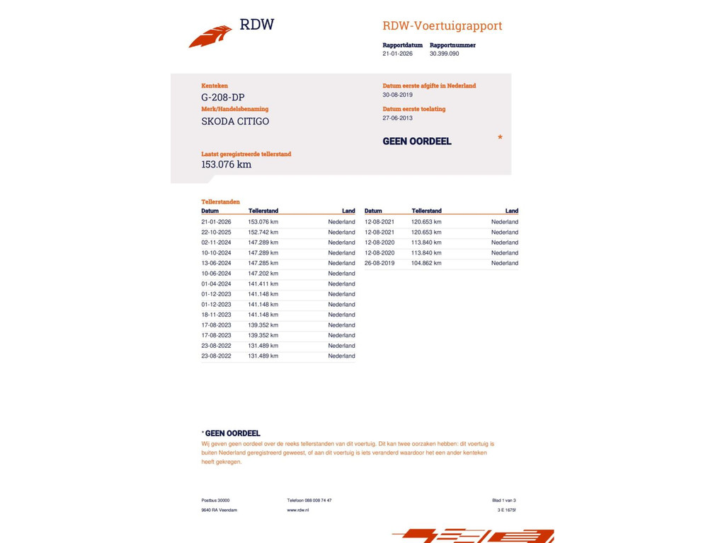 | 153.076 km | 2013 | 75 PK | Benzine | Handgeschakeld | Marge |