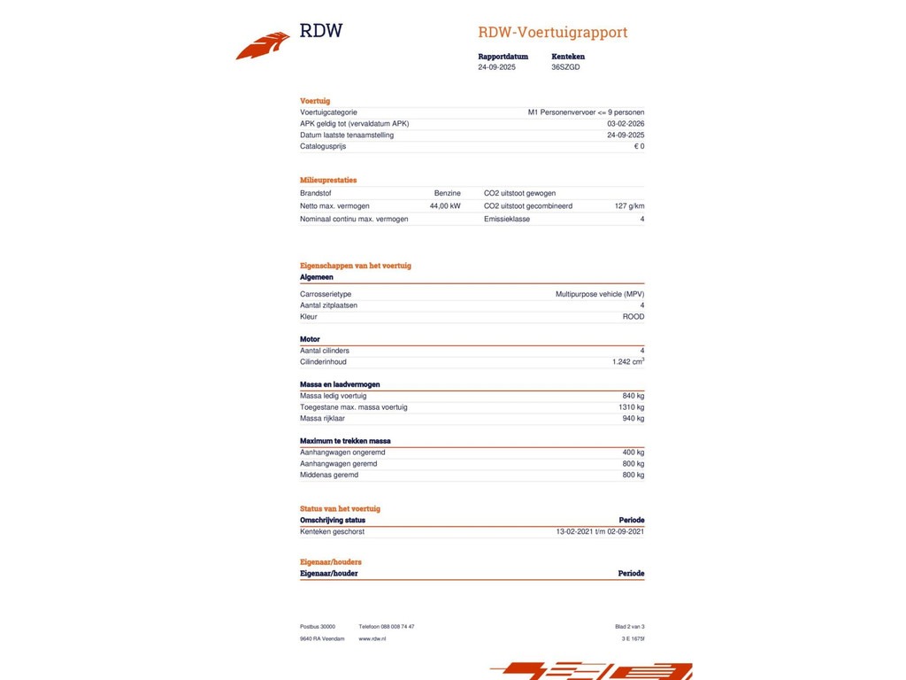 Kilometerstand | Bouwjaar | Vermogen | Brandstof | Transmissie | BTW |