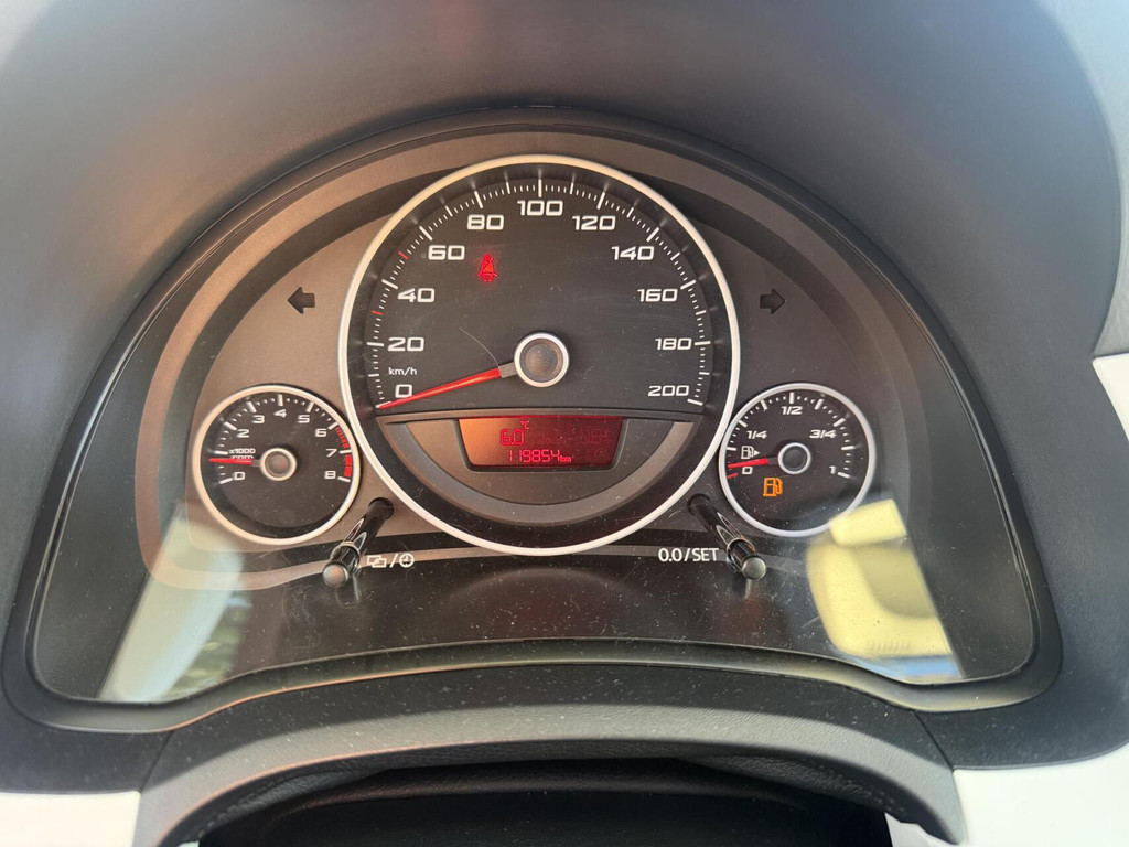 Ook is de auto voorzien van automatische airconditioning. Inparkeren zonder angst voor schade. De parkeersensoren helpen u om moeiteloos in de kleinste parkeervakken te manoeuvreren. Om de veiligheid onderweg te verhogen, heeft deze Seat zowel een automatisch inschakelbare verlichting als een regensensor aan boord, zodat hij zelf de verlichting en de ruitenwissers kan inschakelen. Cruise control verlaagt de brandstofkosten en verhoogt het rijcomfort. Muziek kan draadloos worden afgespeeld dankzij de audiostreaming via bluetooth. En dan is deze auto ook nog eens voorzien van lederen stuur, centrale deurvergrendeling met afstandsbediening, boordcomputer en lederen versnellingspook.