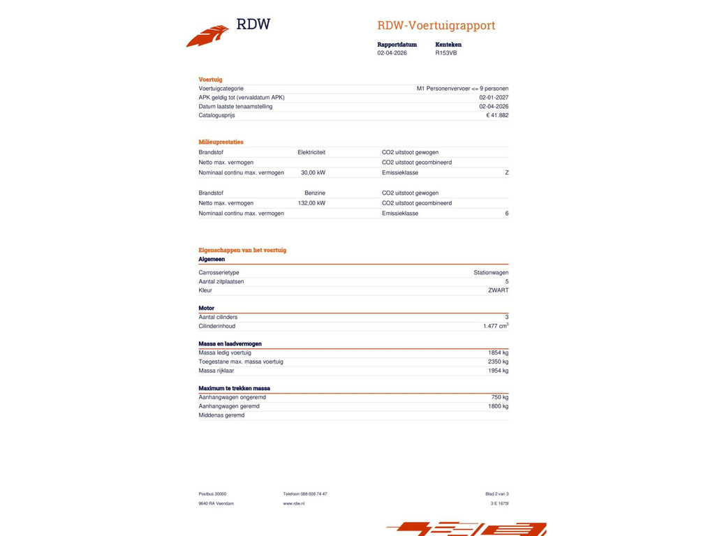 | Kilometerstand | Bouwjaar | Vermogen | Brandstof | Transmissie | BTW |